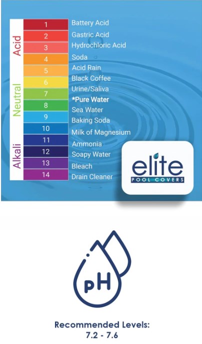 - Below 7.2 = Acidic (corrosive — burns eyes, damages equipment and walk-on pool covers)