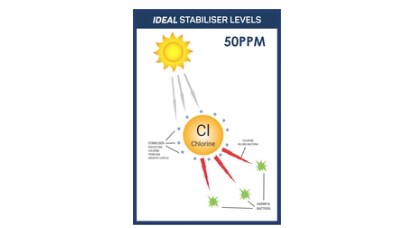 However, too much stabiliser will reduce the effectiveness of chlorine and can result in poor quality water, so ensure stabiliser does not exceed 80ppm.